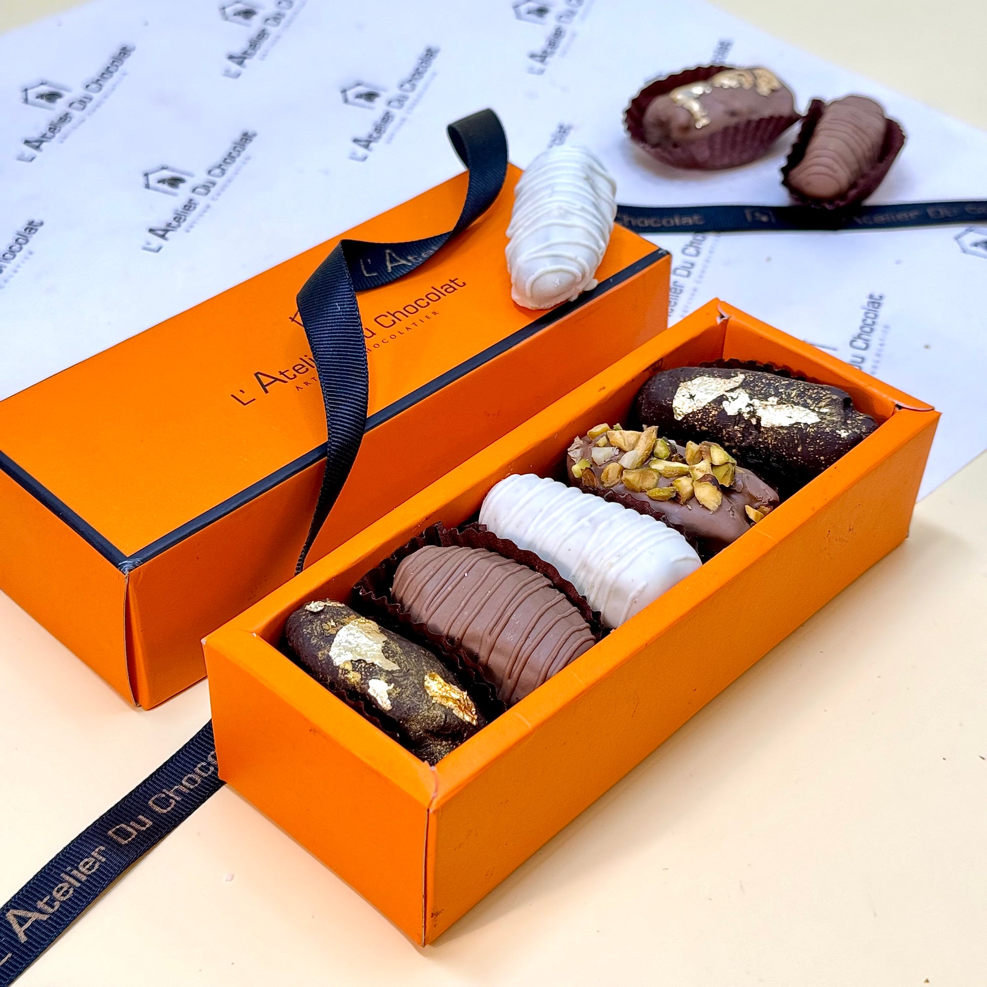 Smooth chocolate and soft date centre create a satisfying bite — ordered for birthday celebration favors.