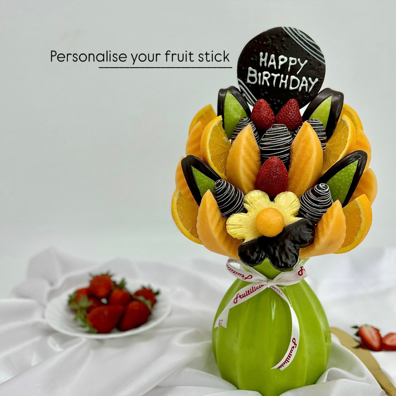 This fruit stick dipped in chocolate acts like a cherry on top for any bouquet! You can now personalize your own choco fruit stick as per the occassion.