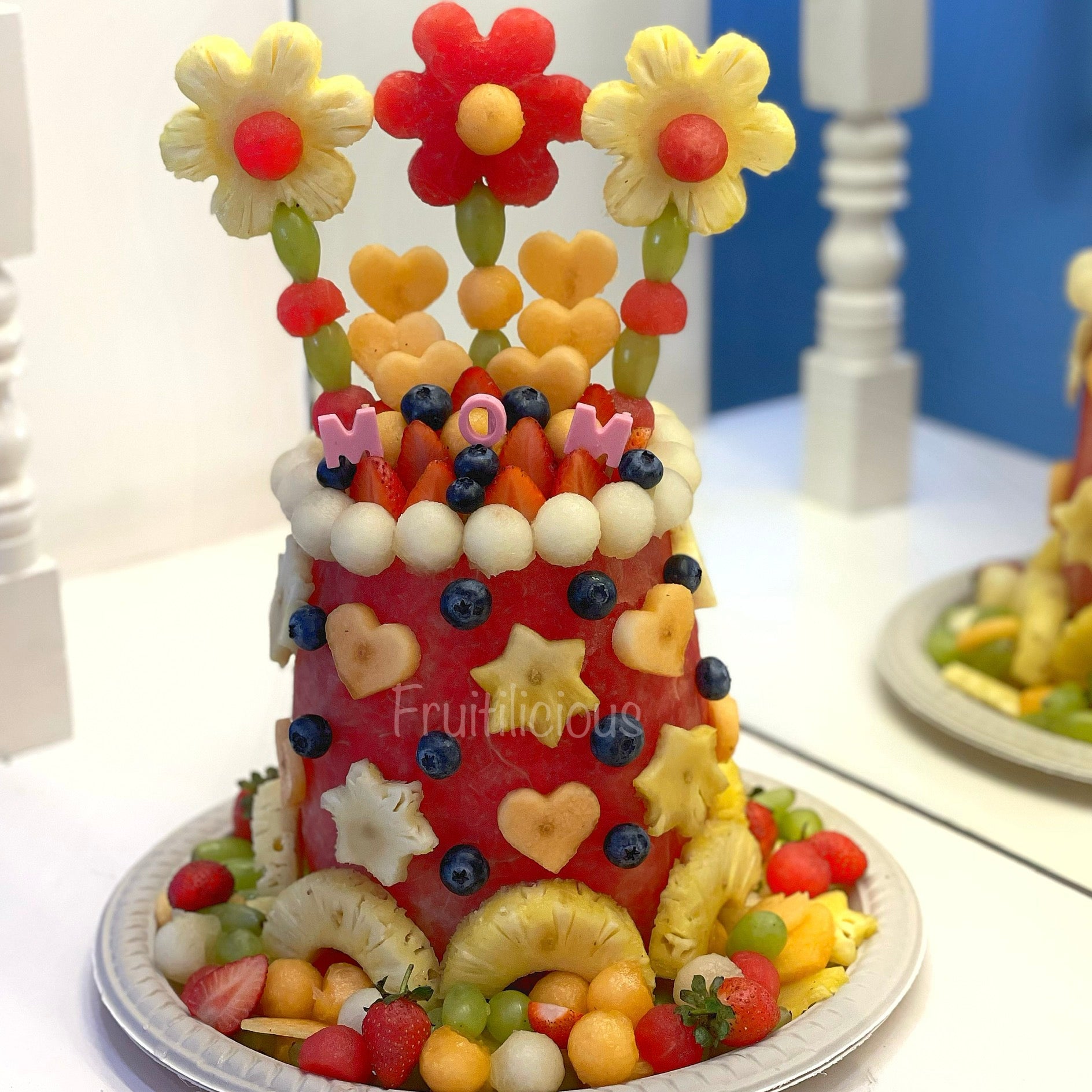 The watermelon cake is a refreshing, vibrant dessert made with juicy watermelon, strawberries, blueberries, pineapple, and cantaloupe. This light and healthy treat offers a burst of natural sweetness in every bite. Perfectly layered, it’s a delightful blend of fresh, tropical flavors. A visually stunning and refreshing way to enjoy Mother's Day!