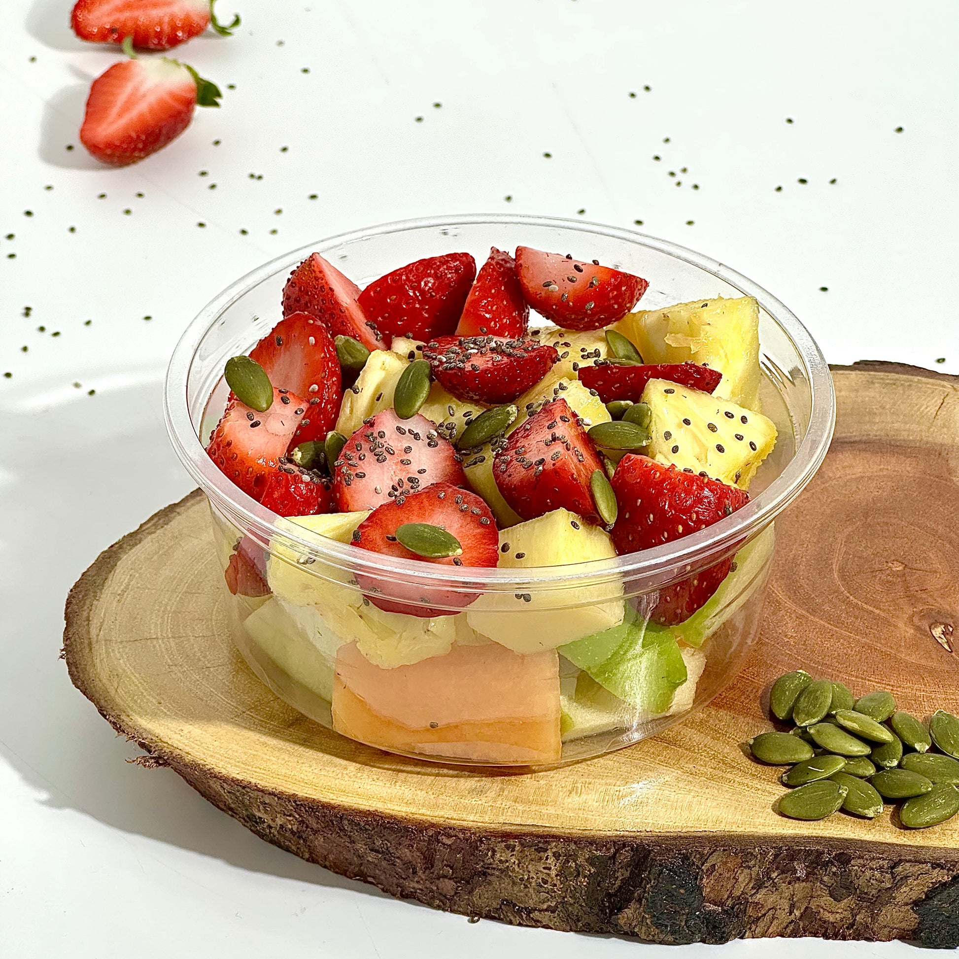 Our Cut Fruit Boxes are a refreshing assortment of freshly cut, sweet fruits, carefully selected for their natural flavors and vibrant colors. Each box comes in a variety of options, featuring seasonal fruits like juicy watermelon, crisp apple, tangy pineapple, sweet blueberries and more, perfectly arranged for a convenient and healthy snack. Whether you prefer a mix of tropical fruits or a classic blend, our fruit boxes offer a delicious and nutritious treat for every taste!